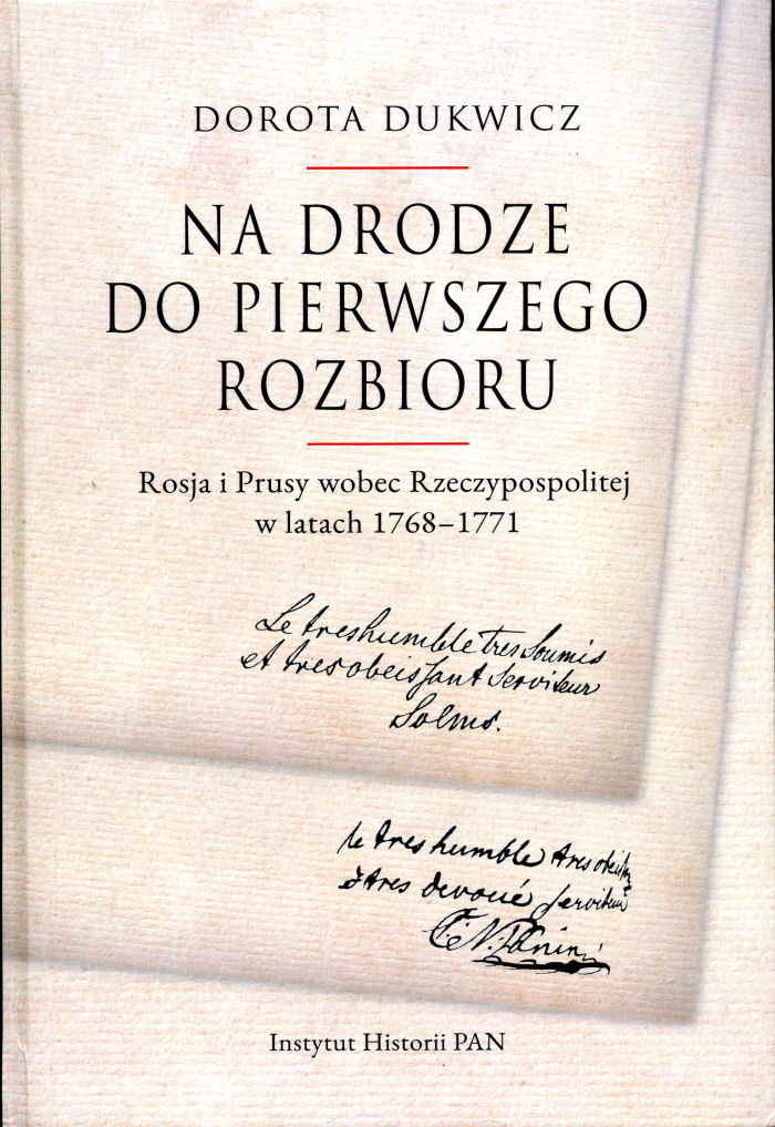 Dukwicz, Dorota. Na drodze do pierwszego rozbioru: Rosja i Prusy wobec Rzeczypospolitej w latach 1768–1771. Warszawa: Instytyt historii PAN, 2022. 518 p.