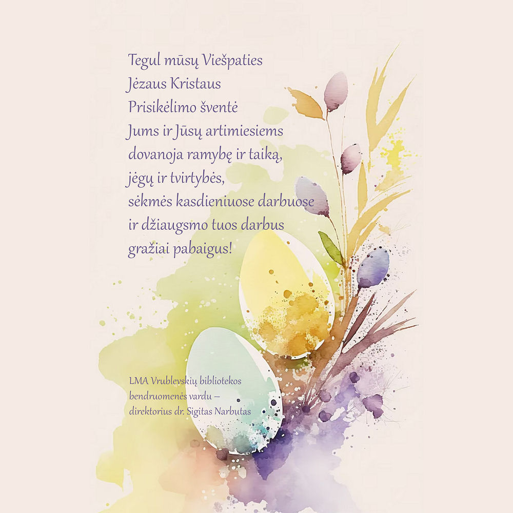 Renginio organizatorius LMA Vrublevskių biblioteka, tel. +370 687 88685