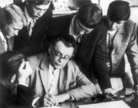 Doc. A. Jucys su VVU studentais fizikais (1950 m.). Iš kairės