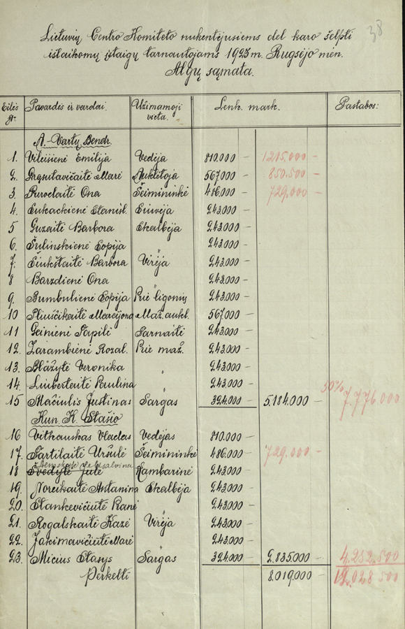 Alseikienė. Liepos mėnesį Lukiškėse buvo kalinami Komiteto auklėtiniai