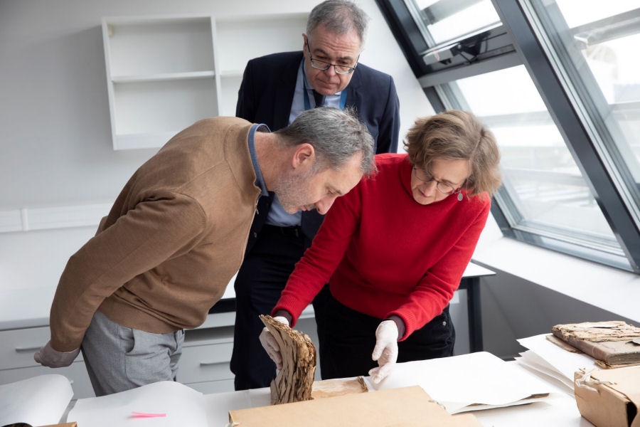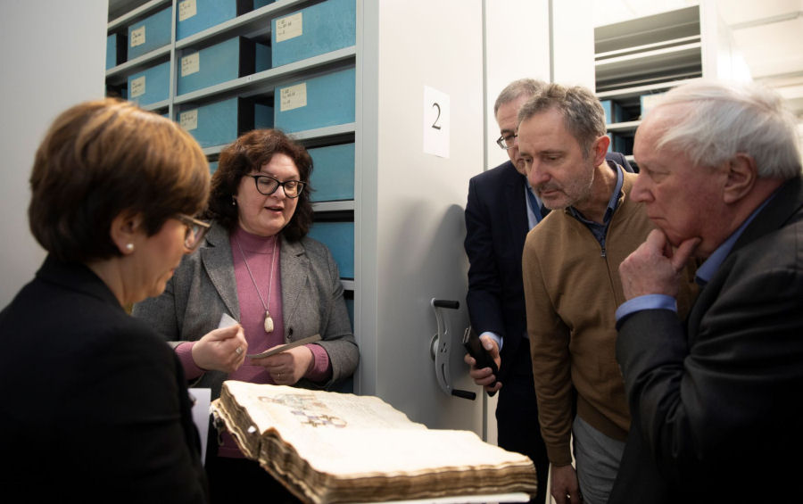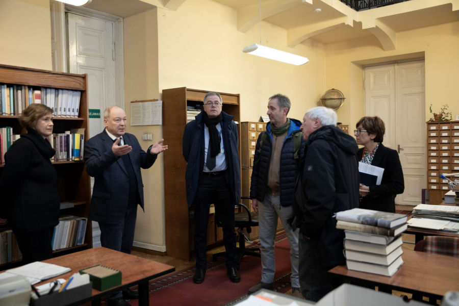 Vrublevskių bibliotekos direktorius dr. Sigitas Narbutas supažindino svečius su Bibliotekos istorija ir veiklomis, ypatingą dėmesį skirdamas saugomų raštijos paveldo objektų kaupimo istorijai ir saugojimui. Ta proga svečiai susipažino ir su rekonstruotomis specialiųjų kolekcijų saugyklomis, su saugomų objektų įvairove ir apimtimis. Dokumentų konservavimo ir restauravimo skyriaus vedėja Edita Keršulytė ir restauratorė dr. Aušra Čiuladienė svečiams parodė atrinktus pažeistų dokumentų pavyzdžius. Buvo sutarta kartu rengti bandomąjį projektą, kuris leistų įvertinti Mažosios Lietuvos aktų kolekcijos (F228) dokumentų dalies skaitmeninio atkūrimo projekto poreikius ir veiklos galimybes.