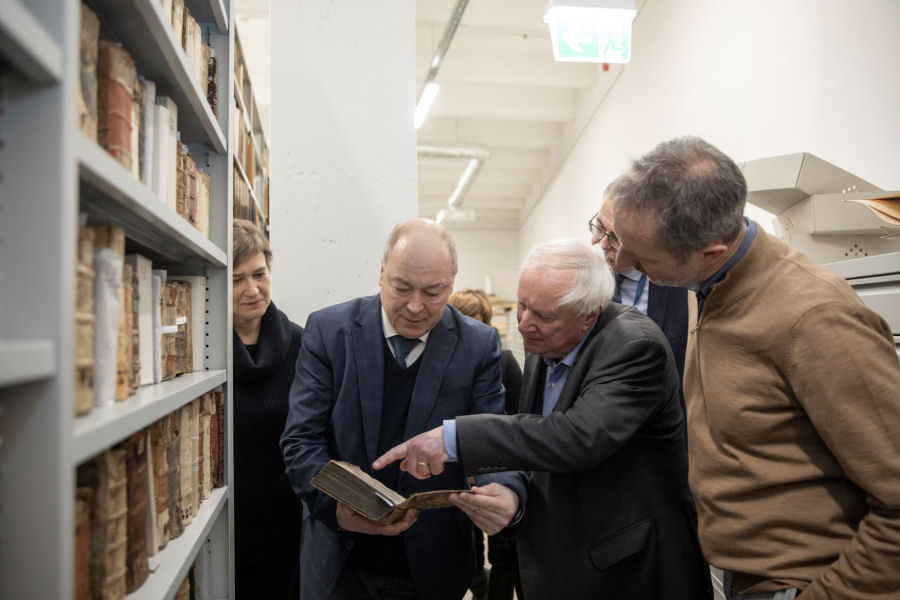 2023 metų vasario 27 dieną Lietuvos MA Vrublevskių bibliotekoje apsilankė įmonės „MFB MusterFabrik Berlin“ vykdomasis direktorius dr. Markas von der Lindenas ir dr. Bertramas Nickolajus, Fraunhoferio gamybos sistemų ir projektavimo technologijų instituto atstovas. Svečiai Lietuvos atminties institucijų darbuotojams puikiai pažįstami, nes lankosi Lietuvoje ne pirmą kartą. Dar 2021 m. rugsėjį Lietuvos nacionalinėje M. Mažvydo bibliotekoje jie pristatė sukurtus ir įdiegtus technologinius sprendimus, leidžiančius skaitmeniniais įrankiais atkurti prarandamus kultūros paveldo objektus. Jų sukurta programinė įranga buvo panaudota, atkuriant Gotfrydo Vilhelmo Leibnico archyvą jo vardo bibliotekoje Hanoveryje, Kelno miesto istorinio archyvo dokumentus, istorinę Vokietijos federalinio banko banknotų kolekciją ir kt. Kartu bibliotekoje lankėsi Ministro Pirmininko patarėja kultūros klausimais Gabrielė Žaidytė ir Ministro Pirmininko patarėjas strateginio planavimo, viešojo administravimo, reformų ir pokyčių valdymo klausimais Darius Žeruolis.