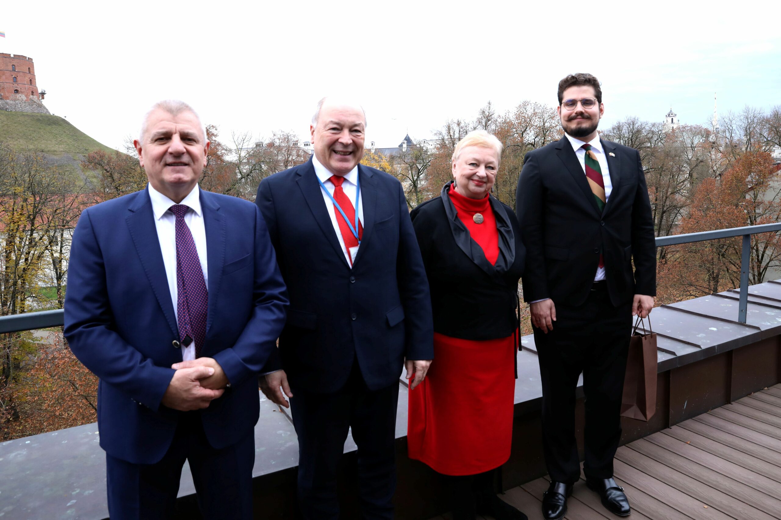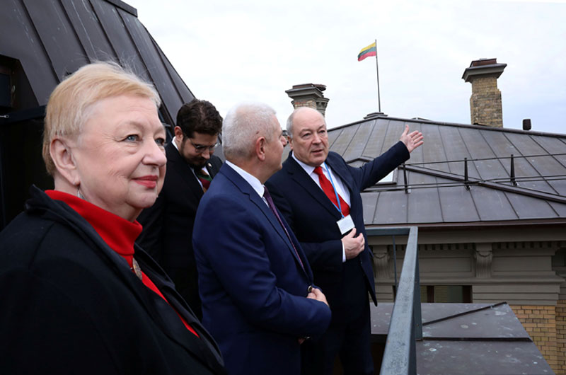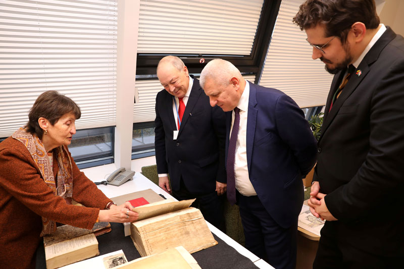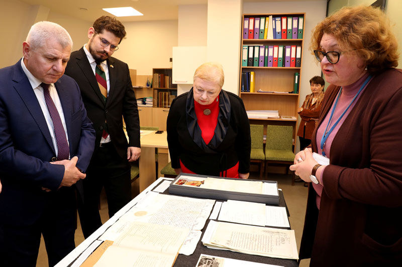 Spalio 30 d. LMA Vrublevskių biblioteką aplankė aukšti svečiai: J. E. Vengrijos ambasadorius Lietuvai dr. Jánosas Béresas ir Vengrijos diplomatinės atstovybės vadovas p. Dénesas Andrásas Nagy’s. Svečius sutiko Bibliotekos direktorius dr. Sigitas Narbutas ir mokslinė sekretorė Leokadija Kairelienė. Šeimininkai ambasadorių ir atstovybės vadovą supažindino su Bibliotekos istorija, statybos darbų eiga ir numatomais pokyčiais po jų atvėrus Biblioteką visuomenei. Aukštieji svečiai pareiškė norą palaikyti kultūrinius ryšius, taip pat informavo apie ketinimus 2026 m. pažymėti 500-ąsias lemtingų Mochačo kautynių metines. Bibliotekos darbuotojos Erika Kuliešienė ir Violeta Radvilienė svečiams parodė įspūdingų dokumentų, liudijančių apie daugiau kaip 500 metų skaičiuojančius Lietuvos ir Vengrijos valstybinius, politinius, kultūrinius, ekonominius ir kitokius ryšius.