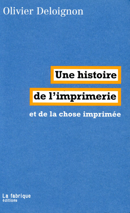 Deloignon, Olivier. Une Histoire de l’imprimerie: et de la chose imprimée. Paris: La Fabrique éditions, [2024]. 323 p.