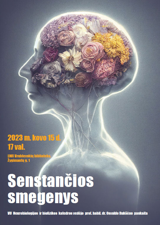 2023 m. kovo 15 d. 17 val. Lietuvos mokslų akademijos Vrublevskių bibliotekoje, Žygimantų g. 1, vyks vieša VU neurobiologijos ir biofizikos katedros vedėjo habil. dr. prof. Osvaldo Rukšėno paskaita „Senstančios smegenys“.